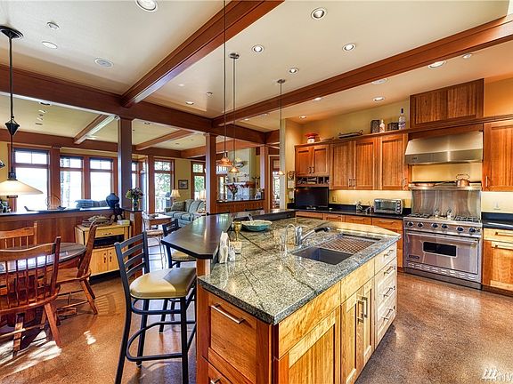 Luxury awaits in this NW craftsman with attention to detail on high bank private westerly waterfront in desirable Biz Point. Relax the stress of the day away watching the sunset over the San Juans & the abundant wildlife. Gourmet kitchen & open floor plan make entertaining a breeze. The luxury upgrades are endless! Custom lighting & sound, radiant heat, theater, shop & built-ins. Separate Mother in law above the garage. Del Mar Amenities include use of 2 private beaches & Biz Point moorage.
