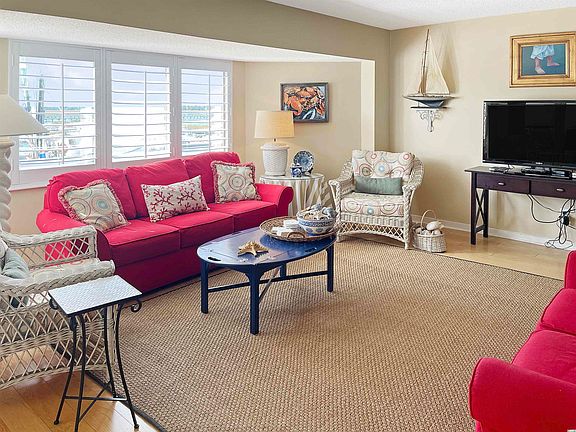HUGE REDUCTION! Welcome home to one of the greatest condo communities in all of the Myrtle Beach area. This turnkey property is ready for a new owner. Did I mention that Marlin Quay 103 comes with an extremely rare private garage? As you enter, you will immediately be blown away by the amazing views. The open living and dining areas are flooded with tons of natural light. The kitchen also has wonderful views of the marina. Both spacious bedrooms have attached baths. The real place to be is the amazing, covered porch. Sitting here you can watch the boats come to and from the marina and also witness one of the best sunsets you will ever experience. Marlin Quay has two community pools, and the grounds are in immaculate condition.