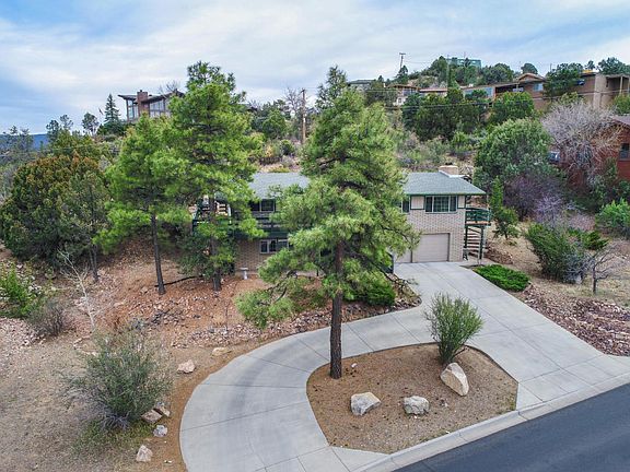 Don't be fooled, this house has completely level entry access off of Sierra Vista, the second access point is off Copper Basin which has a very useful circular driveway. Settled in one of the best areas of Prescott and surrounded by breathtaking views you will not want to miss out on the opportunity to own this home. The main level offers a completely open concept, 3 decks look out to Thumb Butte, Granite Mountain and overlook the Prescott basin. The interior of the main level is completely updated with hardwood flooring, new light fixtures and ceiling fans, granite counter tops, white cabinets, wood burning fireplace with granite slab hearth & tons of natural light.