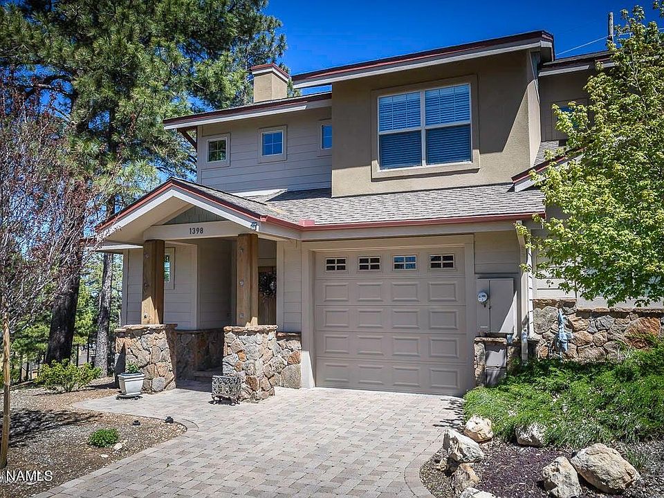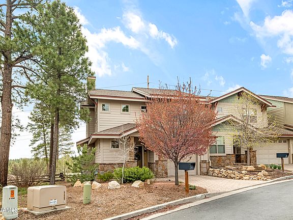 Nestled among the towering pines of Flagstaff, this charming end unit townhouse offers the perfect blend of location, comfort, and style. This spacious 2 bed, 2.5 bath layout (1481 sq ft) has all the modern amenities. The bright and airy great room features a cozy fireplace, dining area and French door access to the fenced patio. The two master suites upstairs offer privacy and convenience, making this an ideal setup for family and guests. Low maintenance everything, newer appliances, and a 2021 AC makes this the perfect part or fulltime home. The attached garage provides extra storage space and ease of all season parking. This move-in ready home is offered fully furnished. Assumable Loan with principle of approximately $270k at 2.62%! Sorry, no short-term rentals allowed in neighborhood.