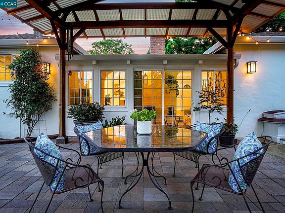 ABSOLUTELY CHARMING STORYBOOK HOME WITH A "MILLION DOLLAR" BACKYARD!!! From the inviting front porch, to warm hardwoods, fanciful arched doorways, beamed ceiling, and an INCREDIBLE backyard OASIS you will be enthralled! A lovely light infused Living Room w/ timeless custom FP will welcome you entering this beautiful sanctuary. Thoughtful updates in the kitchen with gleaming onyx granite countertops, brushed nickel hardware, double SS sink, tile floors, & letting in the sunshine, a Solo tube. Also, lovingly upgraded, is the Bath with marble countertops, dual sinks, tile floors, new light fixtures, and an extra overhead cabinet. Both Bedrooms are ample sized with crown moulding, modern ceiling fans (w/dimmers), and those warm hardwood floors! The Family Room, which is your window to the awesome backyard, can double as an office, hobby room, or whatever you can imagine! Opening the white paned sliders to the backyard you will find yourself transported to a resort destination. Swaying palms, vibrant colored plants, abundant fruit trees (Orange, Fig, Lemon), Impressive 20 foot Pergola that will shelter you summer evenings under twinkling lights, an expansive green 'no mow" lawn encircled w custom designed paved walkways. Nirvana! Great location near parks, shopping, & Hwys! Hurry!!!