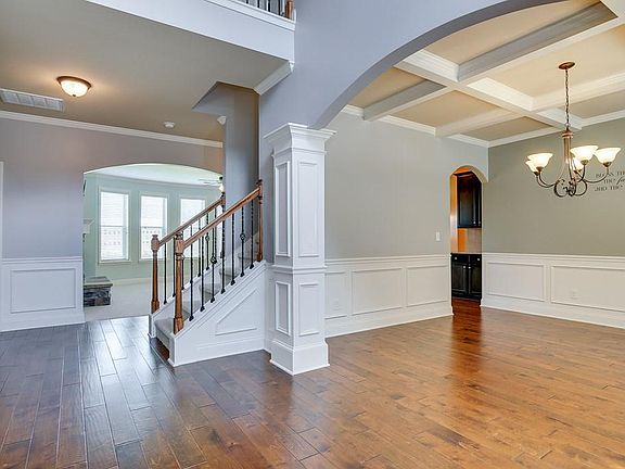 Grand is an understatement for this extraordinary home. This home boasts a 2 story grand foyer that is flanked by both formals with a beautiful arched entrance into the formal dining room with coffered ceilings & double french glass doors that open into the formal living room/private office. Bedroom on the main level is extra large for a in-law suite with a optional private full bathroom, staircase is off to the side with wrought iron spindles, butler's pantry, great room encased by arch openings and a rear bowed wall that has wonderful views through a wall of windows, open spacious kitchen with large granite island w/bar overhang. Breakfast & Master has a 2 story bay window added on for extra sq. ft. Hardwood downstairs, tile flooring, framed mirrors, crown molding throughout & every bedroom has a bathroom. Bonus room is wired w/5.1 surround sound. Master has an upgraded custom closet that has been extended 2ft., tiled shower & jetted tub. Irrigated yard w/ stained privacy fence.