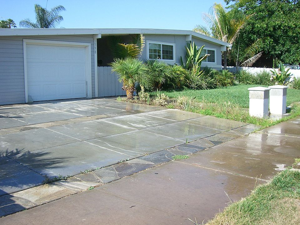 3 Bedroom/2 Bath Mid-Century classic single story home with detached garage, breezeway leading to private front door & sideyard, professional landscaping and hardscaping renovated in the last 5 years. Custom concrete in back patio with oversized slider; great for families with a preference for an Indoor-Outdoor lifestyle. Garage has a great work area with lots of functional storage. Concrete is tastefully accented with flagstone in the driveway and walkway.