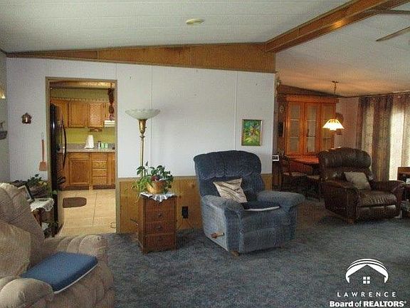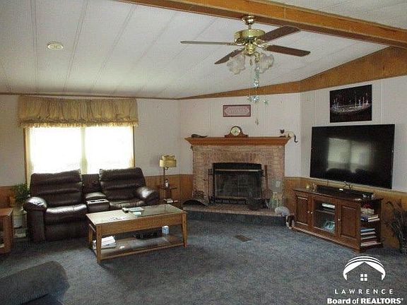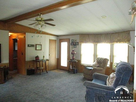 Location, location, location! One level home on corner lot w/ 10 acres m/l located halfway between Baldwin City and/or Lawrence. Manufactured home on full basement with newer windows, doors, aluminum siding and roof replaced 2012. Spacious living room w/ corner fireplace, dining area has built in hutch, propane cook top, master bath has jetted tub & separate shower, enclosed 16x17 breezeway, over-sized 2 car garage and 24x40 outbuilding.