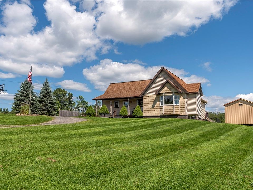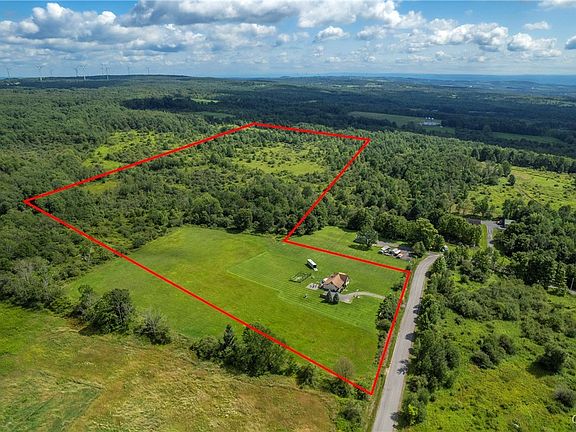 Nestled on 53 acres of pristine land, this top-of-the-world haven is a paradise for outdoor enthusiasts & those seeking tranquility. Imagine waking up to the gentle rustle of leaves in your own private woodland, or strolling through rolling fields dotted with abundant fruit trees and bushes. This property offers the ultimate in privacy and natural beauty. Sit a spell on the charming rocking-chair front porch or party on the expansive rear deck or at the huge firepit. The garden & outbuildings provide ample space for all your adventures and hobbies. Inside, discover a home that is as unique as it is enchanting. Vaulted ceilings wrapped in knotty pine create a spacious yet cozy atmosphere, blending rustic charm & modern comfort. Lovingly maintained, the home boasts thoughtful updates that enhance its warm, welcoming vibe. Autumn in the Mohawk Valley is a sight to behold, and this property places you at the heart of natures spectacle. Explore trails, stargaze in your fields, and harvest fresh produce from your own gardens. This is more than a home; it's a lifestyle, offering peace & seclusion sans compromise.Don't miss the chance to live your best life in this extraordinary sanctuary.