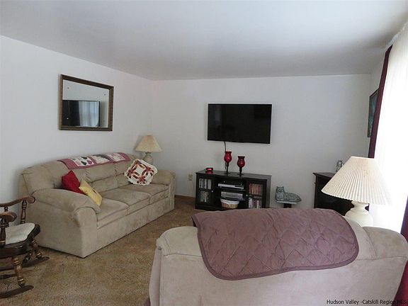 THIS RANCH HOME SITS ON A BEAUTIFUL TWO ACRE PARCEL WHICH LEADS UP TO BLACK CREEK. THE MAIN LEVEL OF HOME HAS AN OPEN LIVING, DINING AND KITCHEN AREA. KITCHEN HAS AN EAT IN COUNTER TOP AND A 19.6 X 15.9 ENCLOSED/OPEN PORCH (BOTTOM HALF ENCLOSED TOP HALF OPEN) OFF OF IT. 3 BEDROOMS AND TWO FULL BATHS. LOWER LEVEL HAS A FAMILY ROOM WITH A WOODSTOVE, A BEDROOM AND FULL BATH ALL WITH ELECTRIC HEAT. ADDITIONAL LAUNDRY ROOM AND TWO OTHER ROOMS THAT HAVE CLOSETS, CEMENT FLOORS AND NOT HEATED. FAMILY ROOM HAS SLIDERS THAT LEAD TO A STORAGE AREA FOR WOOD 10.3 X 9.4. ONE CAR GARAGE IN BACK OF HOUSE WITH NO DRIVEWAY HAS LOW CEILINGS GREAT FOR YOUR LAWN EQUIPMENT OR A SMALL CAR. OPEN REAR LAWN AREA HAD AN ABOVE GROUND POOL WHICH HAS SINCE BEEN REMOVED BUT STILL HAS ELECTRIC HOOK UP. THE COUCH IN THE LIVING ROOM AND FAMILY ROOM STAY AND THE DEHUMIDIFIERS AND WINDOW TREATMENTS. FIRST TIME OFFERED ON MARKET. ROOF WAS DONE IN OCTOBER 2019. PRICED TO SELL, WILL NOT LAST LONG! CONVENIENTLY LOCATED BETWEEN KINGSTON AND NEW PALTZ.