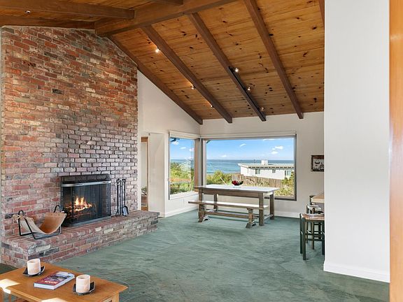 This Asilomar dunes home is located a short distance above Sunset Drive. There are expansive whitewater ocean views and beautiful sunsets, without the traffic of a front line property. Ocean views from all but one room. The family and living room feature vaulted wood ceilings and the living room has a wood burning masonry fireplace. Three bedrooms and three baths are in this home of 1638 square feet and a .84 acre lot. One the ocean side of the kitchen, dining and living room is a large slate viewing deck. Drive up to this home and experience the ocean views, sunsets and wildlife and you may never want to leave.