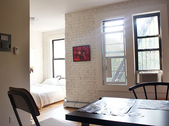 Fully gut-renovated alcove studio apartment just blocks from the Myrtle-Wyckoff L and M trains. The building is across the street from a park, has high ceilings, tons of exposed brick, and a laundry room in the basement. We are the owners of this building, and many others in the area. The Super for the building lives nearby for prompt attention when needed. We are very flexible to all circumstances families, students, room shares, sub-letters, long-term leases, guarantors, etc. No Broker's Fee either!!