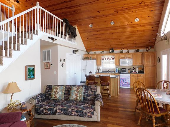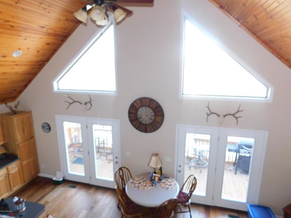 Located on Ridge Crest Drive in desirable Nolin Lake Estates, this 2 bedroom, 1 bath cabin is the perfect weekend getaway!! The loft offers additional sleeping space. This cabin has an open floor plan with lots of natural light and 2 decks to enjoy after an evening on the lake. This property includes 1 full lot and portions of 2 additional lots. There is ample space for parking on the concrete driveway and on the lower portion of the lot. All of this, and the convenience of a neighborhood ramp in the beautiful Nolin Lake Estates.