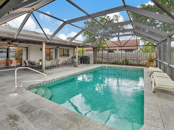 Discover the charm and elegance of this 4-bedroom, 2.5-bathroom pool home in the highly coveted Palm Beach Farms neighborhood of East Boca Raton. Nestled on a spacious corner lot, this gem features numerous upgrades and amenities designed for modern living and ultimate comfort.Step into the light-filled kitchen, where you'll find beautiful wood cabinets, a dedicated coffee/wine bar, and stunning Crema Bordeaux granite countertops. The master bathroom has been reimagined and extended to create a spa-like retreat, offering a serene escape within your own home. Enjoy cozy evenings by the wood-burning fireplace in the family room, which offers a picturesque view of the pool and yard.See more ... The backyard is an oasis, featuring a screen-enclosed pool and patio, along with a terrace that includes a hot tubperfect for evening relaxation and entertaining.