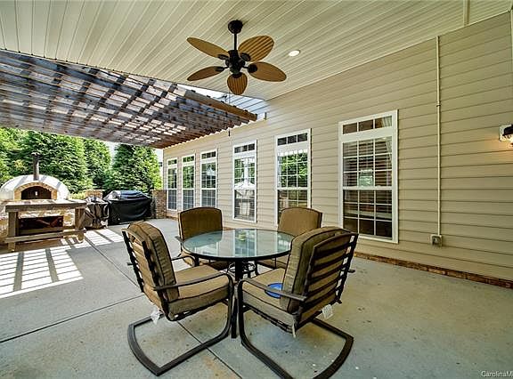 Amazing features in this pristine Fort Mill home. Beautiful private flat lot with fruit trees, garden, huge covered patio, pizza oven, and attached storage shed. Interior includes large windows for natural light, hardwood floors, granite counter tops, gourmet kitchen with double ovens, double-sided fireplace, arched entries and more. The large all season room has windows that can be lifted for "screen porch" use or left closed for use during the summer and winter months. This home sits in a desirable community in Fort Mill with easy access to major highways, great schools, and low taxes. The community features a covered basketball court, playground, pool, and clubhouse. Residents take pride in their properties for a beautifully maintained neighborhood.