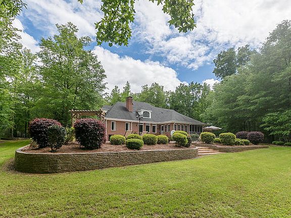 This glorious 23 acre waterfront estate will take your breath away from the moment you pull through the magnificent black iron gates. Custom built to maximize the views of adjoining 10 acre pond, every attention to detail is evident in this sprawling property where wildlife abounds. From its hand crafted stacked stone fireplace to its Pinterest inspired decor your favorite part of the day will be coming home! You'll find a great room w/ soaring ceilings, gourmet kitchen w/ granite & custom tile, office w/ exquisite built-ins, dining room w/ wainscoting & heavy crown, owner's suite w/ a spa-like bath & walk-in closet to die for. Other features include: beautiful hardwoods, plantation shutters, gorgeous light fixtures & storage galore. Brickwork by a master craftsman, rocking chair front porch, screened porch, resort style pool w/ new liner, 44x45 professional 3-bay shop w/ office & full bath, dock, irrigation system fed by pond, playground, batting cage & more to list than space allows!