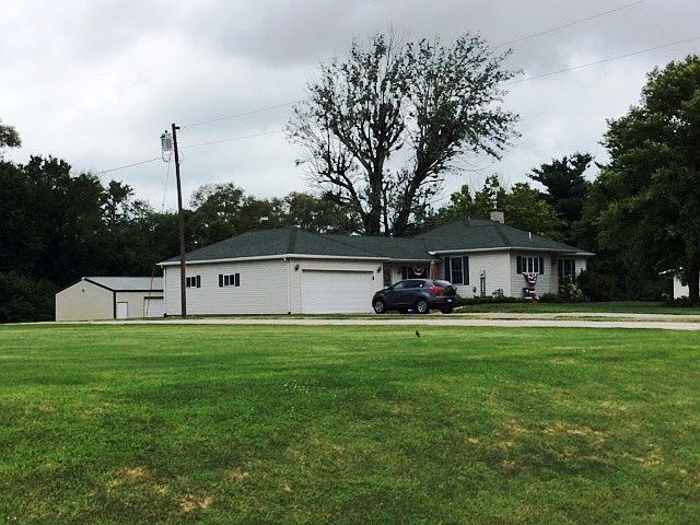The stress release your doctor ordered! Spacious updated welcoming ranch with 2 bedrooms, 2 baths, 2 car attached heated garage, 2 fireplaces and a formal dining room. Finished, drain tiled, basement has a family room, full bath, large laundry room, organized storage and a sump pump. Kitchen featuring new counter tops & back splash plus a breakfast bar. Roof 2012, furnace 1997, H20 1997, septic 97, windows 97. Utilities $160 in high months. Living room carpet 2018. Freshly painted. Pella windows, solid 6-panel doors. Well is 110 deep. Newer 30x45 pole barn wired with 220. Sits on 1 acre with woods in back drop. Aggregate front patio.