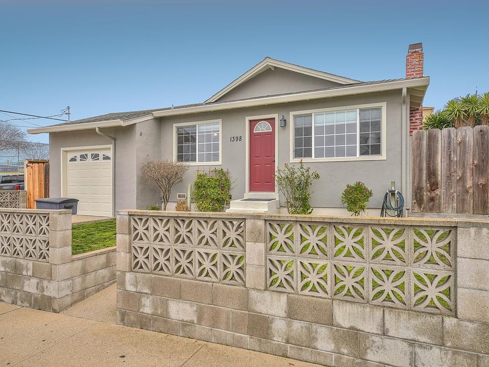 Lovely Seaside home "move-in ready" features a beautiful travertine stone fireplace & mantle in the living room with engineered hardwood floors and coordinated interior paint to match the custom made Smith & Noble window valances and window dressing (top-down/bottom-up shades), brand new hot water heater, hallway bathroom upgrade ( 5 yrs old ) custom wood vanity and matching medicine cabinet, tiled floor and shower, and new tub. All new interior and exterior paint. Backyard stamped concrete upper patio. Partial bay views.