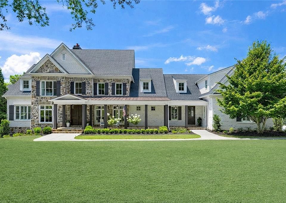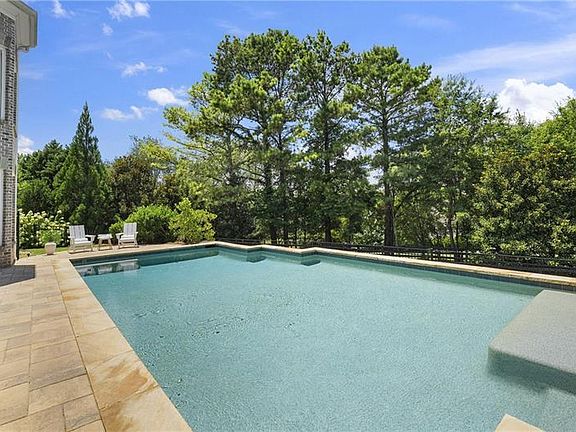 Set on meticulously landscaped acreage in gated neighborhood of The Hayfield, known for its gas lantern street lights, tree- lined drive and copper mailboxes, this distinguished residence blends timeless architectural beauty with elevated upgrades throughout. A sweeping front porch lit by gas lanterns opens into a radiant two-story foyer. To one side, a private study with French doors and board and batten paneling offers a peaceful retreat. Opposite, a formal dining room features an exposed brick accent wall and French doors to the front porch-perfect for entertaining or quiet evenings. The main living room unfolds beneath a coffered ceiling, centered around a stately fireplace with custom built-ins. French doors flood the room with natural light and open to a sprawling rear deck, ideal for entertaining. The gourmet chef's kitchen is a true showpiece: custom white cabinetry to the ceiling, dual oversized islands topped with 3-inch marble, and a dramatic gas fireplace add warmth and elegance. Premier appliances include a Sub-Zero refrigerator, Wolf six-burner range with double ovens, two Bosch dishwashers, and a Sub-Zero wine refrigerator. A farmhouse sink and sunny breakfast area overlook the private backyard, while a walk-in pantry - with a second refrigerator, coffee/appliance bar, and abundant storage - offers unmatched convenience. A second friend's entry on main with charming dutch door leads to the main level laundry room, large mudroom with 6 built-in sections, and two half baths round out the main living areas with both function and style. The main-level owner suite is a serene retreat with bay window seating alcove, wood-beamed ceiling, and marble-surround fireplace. The spa-inspired owner's bath features dual marble-topped vanities, a freestanding soaking tub set against a dramatic glass-tiled accent wall, a marble shower, water closet with bidet, and a custom walk-in closet with built-ins and a large central island. Upstairs, a centrally located secondary primary suite or upper bonus features vaulted ceiling, custom built-ins, and a luxurious en suite bath. The upper holds five additional bedrooms each with en suite baths as well as a convenient second laundry room. Tucked between two upper bedrooms you will find a private flexible area that would work well for a study space, reading area or upper play zone. The finished terrace level offers stylish entertaining and everyday comfort. A full kitchen and lounge flow into a second family room with a whimsical playhouse. A spacious guest bedroom, a gym with spa-like bath, and a movie room with built-in speakers create versatile living spaces. A flex room awaits your vision-whether wine cellar, art studio, or meditation space. A storm room with reinforcement offers the potential for a secure space for safe room, gun room or storage. Additional space is entered from media that lends itself to optional golf simulator room. French doors open to the covered patio and a resort-style saltwater gunite pool with tanning ledge. A level lawn is bordered by mature trees, a playset, and lush landscaping. In 2023, the grounds were refreshed with new sod, irrigation, wood fencing, and vibrant plantings-hydrangeas, roses, and sculpted hedges. Upgraded exterior lighting creates a magical ambiance at dusk. An oversized three-car side garage accommodates SUVs, golf carts, or recreational gear with ease. The home is set in the most popular trio of schools including Milton, Northwestern and Birmingham Falls. Located in the quiet, sought-after neighborhood of The Hayfield with walkability (back walkway in neighborhood with it's own gate) to The Union Restaurant and Bar and just minutes from Downtown Crabapple/Milton, Downtown Alpharetta, and Avalon-this is a home where luxury, comfort, and convenience meet. Welcome Home! (The primary image has been digitally altered to show the home painted white).
