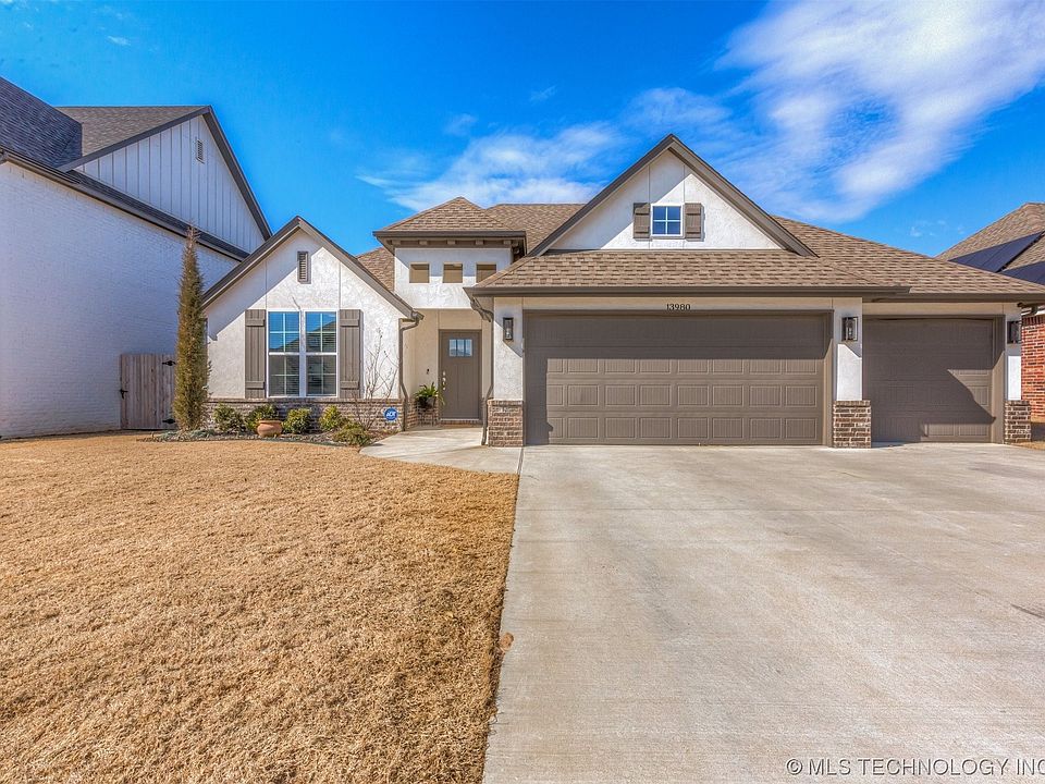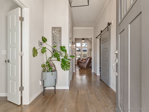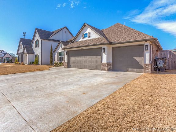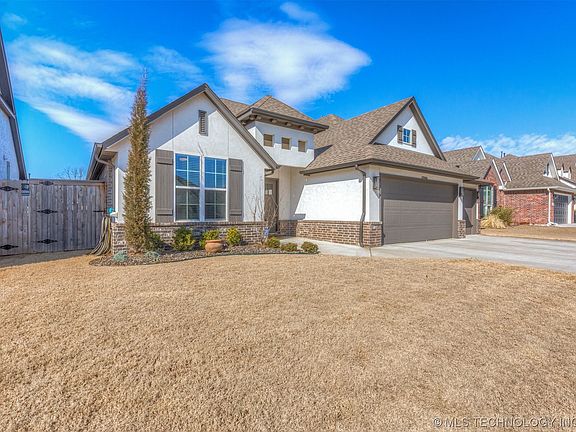 This stunning, better than new home offers 3 bedrooms, 2 baths, a separate office, and only 3 years old! The split/open floorpan is perfect for entertaining, with soaring ceilings in the living room. It has gorgeous hardwood floors throughout, a beautiful neutral color palette, granite in the kitchen and both baths, a drop zone coming in from the garage, laundry room connected to the large master closet, and the master bath has double vanities, a soaking bathtub, and frameless glass/tiled shower. Great sized covered back patio and backyard. The neighborhood offers a park around the corner from the home and walking trail. Also is in the new Bixby West Elementary School district! Don't miss this one!