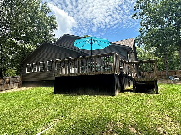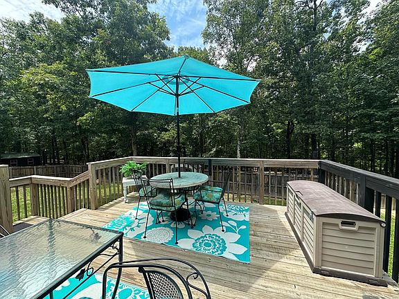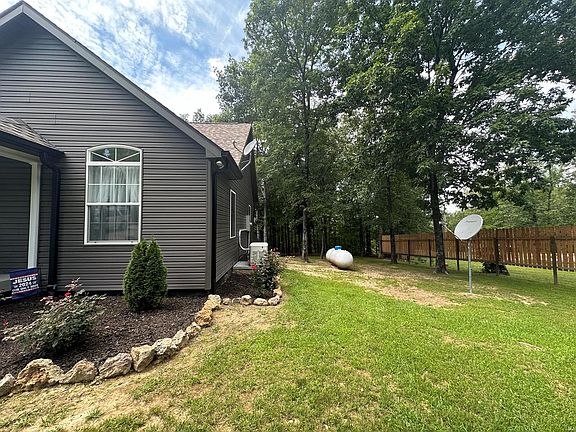 This 2019 custom-built, single-owner home boasts numerous high-quality features. The foyer leads to a vaulted ceiling living room with an electric wall fireplace and rustic/distressed wood Alpine Oak tile flooring. The kitchen features custom WW Woods Products cabinetry, quartz countertops, and LG black/stainless steel appliances. A bay window highlights the dining area, complemented by a spacious pantry and office space. Jeld-Wen double pane windows enhance energy efficiency. The primary bedroom offers a walk-in closet, vaulted ceiling, electric fireplace, ensuite bath with shower w/seat and soaker tub. Central heat pump, air conditioning, and LP gas Generac generator ensure comfort. Vinyl siding and vinyl fascia & soffit. A sunroom with marble porcelain stoneware flooring and mosaic tile bathrooms add elegance. Two tier deck. Situated on 5.33 acres, with a circle drive & with separate septic tank and electric meter, including two outbuildings, and close to Wappapello Lake. Additional Rooms: Sun Room