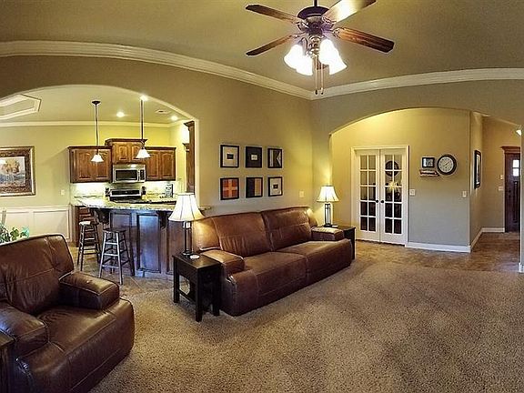 - Features: Water/Municipal Water, Area Description/Country Living, Fencing/Wood Fence, Flooring/Hardwood, Appliances/Microwave, Appliances/Dishwasher, Appliances/Range / Oven, Exterior Description/Brick, Flooring/Wall to Wall Carpet, Garage Description/Attached Garage, Appliances/Garbage Disposal, Exterior Living Space/Patio, Area Description/Fishing, Cooling/Central A/C - Electric, Fireplace Count/1 Fireplace, Lot Size/1/2 - 1 Acre, Flooring/Ceramic, Fencing/Fenced Yard, Bath Features/Tub and Shower, Exterior/Sidewalk, Garage Count/3 Car Garage, Basement/None, Garage Description/Garage, Age/6-10 Years Old, Sewer/Aerobic System, Body of Water/Pond, Exterior/Dog Run, Exterior/Fire Pit