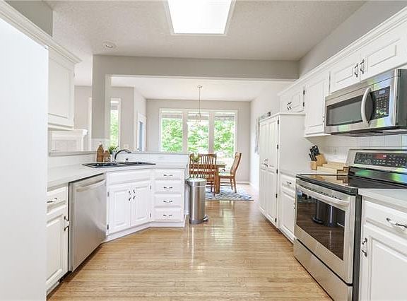 Fab 2 story home in the heart of the award-winning Blue Valley School District*Home boasts formal dining/flex room, white kitchen & stainless steel appliances*Choose your own kitchen counters w/acceptable offer*1/2 bath on main*Great rm w/gas FP, breakfast area & access to east backing patio w/wide open yard, mature trees, partial wood fence*NEWER upgrades include: HVAC, sprinkler system w/smart wireless remote, exterior paint, sump pump, many PELLA windows and freshly painted interior*Laundry and 4 bdrms on 2nd floor*Finished lower level w/wet bar & large open space*storage area w/built-in shelves*BV's Liberty View Elementary in the neighborhood. 2021-05-20