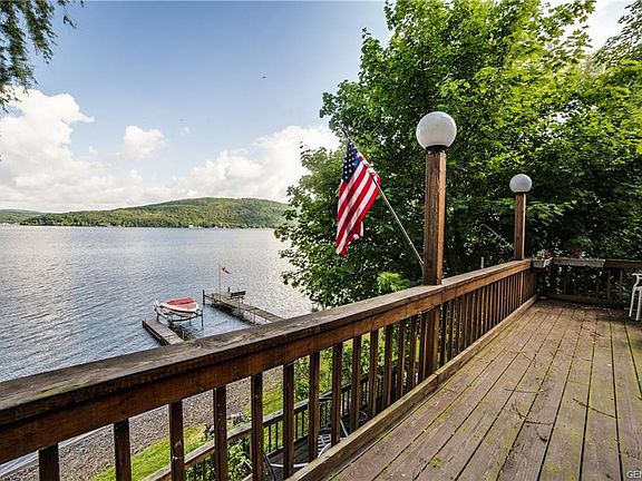 This stunning three bedroom, two and a half bath home built in 1994 is nestled on one of the most beautiful lots in historic Keuka Village on the east side of Keuka Lake. This well built, 3600+ square foot home sits away from the road in a private setting with breathtaking bluff views. Watch the sunset from either of the 2 large decks, or enjoy the smart open concept floor plan inside. The home has two kitchens, and two living areas with plenty of space for entertaining guests. The backyard is serene, and the waterfront is flat. Come see for yourself!