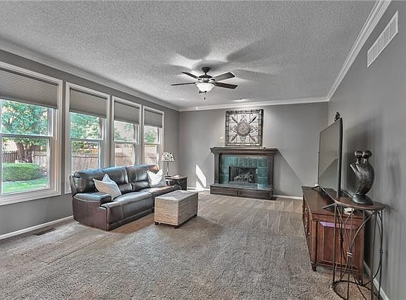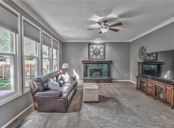 - Features: Carpet, Ceiling Fan(s), Fireplace
