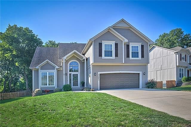 Great 2 story located in the Blue Valley School District. Several big ticket items completed including much of the siding and most windows replaced. Enjoy relaxing on the newer composite deck or paver patio in your backyard with mature tree line. Beautiful real wood floors in entry, breakfast and kitchen which opens to the large great room. Painted kitchen cabinets with granite tops and under cabinet lighting. Front bonus room could be home office, den or additional dining area. The laundry room is conveniently located on the bedroom level. The east facing daylight foundation windows provide fantastic light in the finished recreation room.