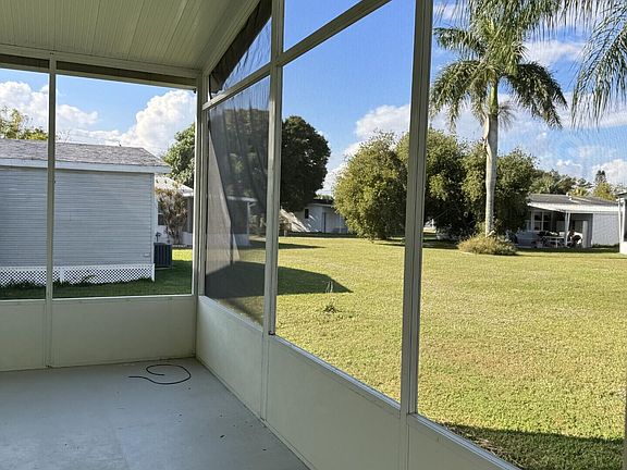 Lovely park-owned home in the desirable Spanish Lakes Fairways community! With a new roof and low lot rent of just $699/month, this home offers exceptional value for the next buyer. Inside, enjoy modern cabinets and flooring, creating a fresh and updated living space. Relax in the screened porch or take advantage of the home's convenient location close to the community entrance and clubhouse. Perfect move-in-ready opportunity in a well-maintained, vibrant neighborhood! Enjoy resort-style living in Spanish Lakes Fairways! Amenities include free golf, clubhouse with pool, fitness center, library, and hobby rooms, plus tennis, pickleball, shuffleboard, bocce, and regular social events. Trash and lawn maintenance included with lot rent. Storage shed ready for your tools!