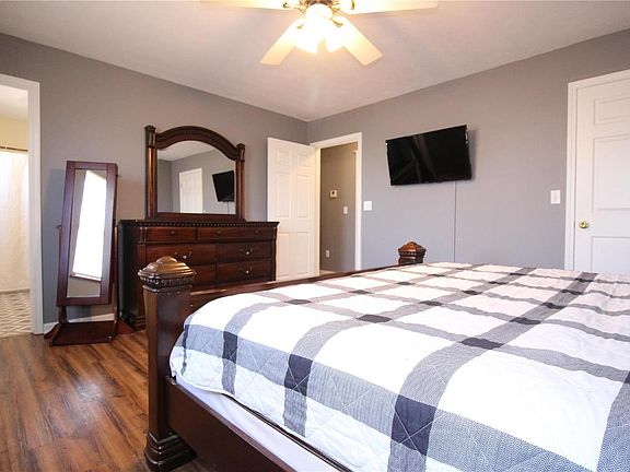 WELCOME HOME! This 4 bed 3 bath beauty on 6.6 acres is located at the end of a quiet country street, just minutes from the South Gate of Fort Leonard Wood. The 2 story home features a custom staircase which greets you upon entry. A wood burning fireplace in the main living room is sure to impress. The kitchen boasts custom butcher block countertops, a center island, deep farmhouse sink and a touch screen digital refrigerator. The main floor also features a second family room, guest bedroom with attached bathroom and laundry. Upstairs you'll find the master suite, guest bath and 2 additional bedrooms which both walk out to a balcony that overlooks the front of the property. Outside you'll love the deck space overlooking the backyard which is the perfect place to entertain. A storage shed is included with the property. This home is sure to check your boxes, so schedule your tour today!