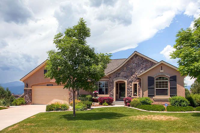 Walk out corner lot, top of Flying Horse with Peak and USAFA views! Perfectly maintained 4 bedroom and 4 bath WITH 2 MASTER SUITES ON THE MAIN. Gourmet kitchen with Granite countertops, stainless appliances, double ovens and tons of large cabinets. Too many upgrades to list, open ranch floor plan, tons of mature landscaping, quiet street, one owner, a lot of privacy, new carpet on main, custom window treatments and on and on.....