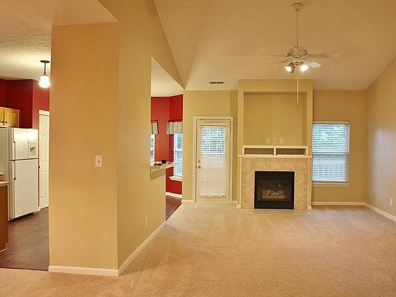 Move right into this beautiful home! Open layout, soaring ceilings, decorated like a model, lots of updates! Situated on the best lot! Wood deck overlooks private yard. Kitchen with hardwoods, breakfast nook and large pantry. Split bedroom floorplan. Vaulted master suite with large walk in closet, sep shower and garden tub. Great room with gas fireplace. Laundry/mudroom. Oversized garage. Enjoy the community pool, park, walking trails and the great location close to everything!