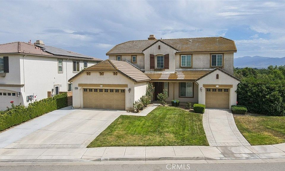 Location, location, location! This 5-bedroom and 4-full bathroom home with an open loft is located in the highly sought-after Brookdale Terrace Community. A very rare home in Eastvale with a combination of city lights view, 9,000+ sq.ft. of lot and located in a cul de sac. If you’re looking for a home with privacy, no adjacent homes in the rear and side view, no HOA, 92880 Zip Code then your search ends here. The entryway features a cathedral ceiling, lots of natural lighting with dual entry stair access. This home has its own formal living room, formal dining room, dry bar, family room, multi closet storage space, laundry room and spacious kitchen all openly laid out on the main floor. The family room offers a bright and open layout that faces the kitchen. The upgraded kitchen has granite countertops, lots of cabinet space, dual stainless steel oven, stainless steel dishwasher, microwave, gas stove top, and a kitchen island with a bar top eating area. The family room and kitchen brings in a lot of natural light from the open view of the backyard, Eastvale Trail and city lights. This home has many upgrades such as crown moldings, ceiling fans, extra padded carpet, mirrored closet doors, multi walk-in closets, dual air conditioner, fireplace, wired ethernet connection throughout, dual paned windows, recessed lighting and wired exterior camera system. There’s a one bedroom and a full bathroom also located on the main floor. In the second floor, you will see the bright and airy loft with a lot of natural lighting. The second bedroom has its own full bathroom, walk-in closet, crown molding and recessed lighting and a view of the city lights. The third and fourth bedrooms feature a walk-in closet, a mirrored closet, and both ceiling fans. The master bedroom has its own private master bath with tub, walk-in shower, separate toilet room, dual sink and walk-in closet. Both the master bedroom and bathroom also have an open city lights view that brings in natural light. The fourth full bathroom also includes a dual sink and a separate toilet and bathtub and shower combo. This home features a 3-car garage with two separate driveway and entrance to the house. The main garage also has built-in storage ceiling racks. The spacious side and backyard offers plenty of private space for your entertainment and ready for your design and imagination. Come and see this one of the few homes in Eastvale (92880) that is located alongside Eastvale Trail.