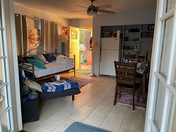 Available 10/01/2024 Please ask for an application if serious about renting. Please do not ask me to view the property, unless you have first shared more about yourself and your family / life situation/ your job /financial status. Please Do not call me, unless we agreed upon it. Thank you for being respectful of my privacy. Do you dislike apartment complex living? Would you prefer your own private space? This studio on 1.66 acres of wooded land could be the spot for you. Enjoy your own 300 sq ft studio with a large partially covered private patio area. Located close to hiking trails and a creek, but only a short distance from shopping areas, there is plenty of space for artistic pursuits, gardening, yoga and other hobbies. It's perfect for an individual who loves nature and animals rather than crowds and noise. The studio is attached to the main house which was originally owned by an artist, then a goldminer who even knew Wyatt Earp. It has a feeling of history. The studio is newly refurbished with fresh paint, french doors and new bathroom fixtures. You will appreciate the quiet setting, the sounds of nature, peace and tranquility. We provide a toaster oven, microwave and dual hot plate plus full sized fridge. Please Tell us a bit about yourself, we will contact you if you're a good fit. Thank you for being communicative and open, this is a drama-free zone. Pictures show the layout of the studio and patio plus the surrounding area. Please only contact us if ready to rent. We live in the main house and are immediately attentive to any issues. We want someone who is responsible and respectful to share this piece of paradise in the woods! laundry on site no smoking carport rent period: monthly 1360 for 1 person plus utilities (trash $30 /electricity approx $30 depending on usage and water $30) The studio will be rented mostly unfurnished with single day bed , table chair, lightly furnished, unless requested by new renter furnished or completely unfurnished. Rent is $1360 Deposit is $1360 Sheds/storage $200 20 minutes from airport. 25 from Ocean Beach, Chula Vista, and San Ysidro. 30 from Poway and Coronado Island Close to La Mesa / spring valley Available now. Message us to apply! Bills run usually around $ 100 depending on electricity usage.