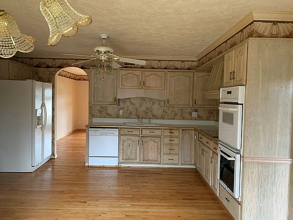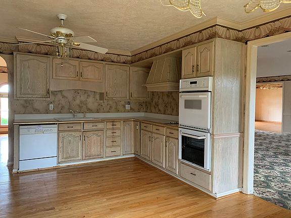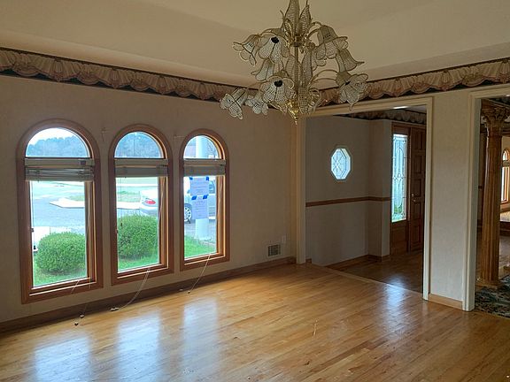 Expansive home with twin double garages detached and circle drive completely paved. Stately and stunning entrance. Exterior portico is colonnaded and front door is solid carved wood with side panels of cut glass. Beautiful white granite stone with rose quoins accenting the corners of home. Many windows are paladin arched windows. Columns grace huge open interior living room with fireplace. Hardwood floors in main rooms and kitchen carpet in the rest of the home. Many crystal chandeliers throughout the home. Formal dining room with trey ceiling. Whitewashed french cabinetry in kitchen and 2 refrigerators. Master bedroom has fireplace and bedroom adjoining.