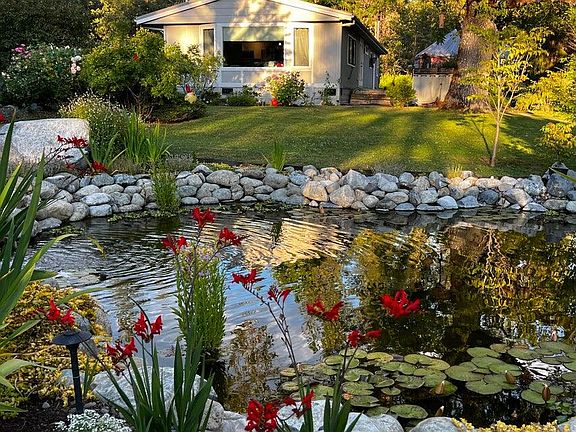 Backup offers are now being accepted! This beautiful two-bedroom, two-bath home boasts1,344 square feet of thoughtfully designed living space set on a picturesque one-acre lot. Ideal for those seeking a tranquil lifestyle without sacrificing modern comforts, this property features a range of upgrades that enhance the beauty of the property. All the hard work has been done for you-recent renovations include-metal roof,new HVAC system,updated appliances including new sink & garbage disposal, track lighting in the kitchen,renovated laundry room with updated plumbing and water heater, new faucets fixtures and fresh interior & exterior paint, brand new front porch and new well pump. The property has new fencing with a security gate, a variety of healthy fruit trees, two yurts perfect for a creative studio, home office or additional storage. The standout features of this property is the big, beautiful koi pond and the freshly painted and restored back deck. Come see this home today