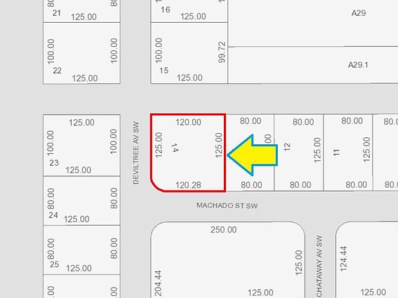 0.34 acre corner vacant lot available in Port Malabar Unit #52 of Palm Bay. There are no utilities present at this lot or in this area; so the lot and the unit are not build-able. The seller has no knowledge of the property and makes no representations except for title. This property is for investment purposes only in the future of Palm Bay. From exit #176 of I-95 go west on Palm Bay Road for .7 miles, left on Minton Road for 3.3 miles, right on Jupiter Boulevard, and quick left on DeGroodt Road for 2.5 miles. Turn right on J.A. Bombardier Boulevard for 2 miles, left on Wingham Dr. for .7 miles, right on Stimmel, left on Utopia, and right on Machado. The lot will be on your right at the corner with Deviltree Avenue.