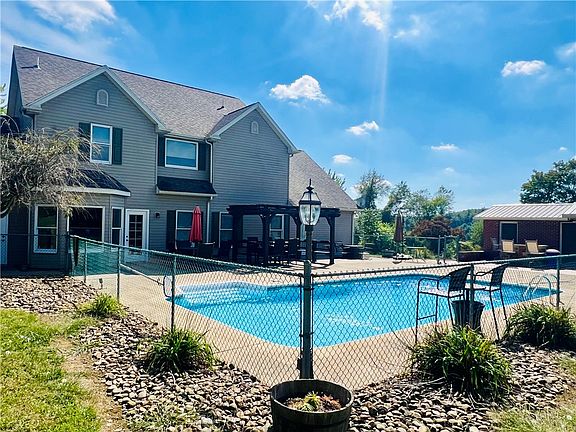 SPECTACULAR HOME WITH ACREAGE!! Welcome Home to 1399 McClellandtown Rd. Do NOT wait! Make this Custom Built 4 BR 3 1/2 Bath Home Yours Today. Lighted Stone Pillars formally grace the Private Drive leading to this Magnificent Home on 12 acres! Free Gas!! Entertain Outdoors in Grand Style on the expansive fenced patio that surrounds the 16x32 in-ground Pool. A spacious Pool House and custom Outdoor Pizza Oven complete the Pool area. Step inside to find the stunning Stone Fireplace reaching high to the vaulted ceiling of the Living Room. Kitchen with Oak Cabinetry, Ceramic Flooring & Appliances included. Formal Dining Room. A Resort feel greets you as you enter the Main Floor Master Bedroom Suite. This Grand Bedroom boasts high ceilings, Gas Fireplace and Patio Access! Master Bath is complete with Jacuzzi Tub. Upstairs Bedrooms have Jacuzzi Tubs. 30x17 Game Room/Bonus Room. Spacious 2-car integral garage w/ tons of storage space. New central AC. Home Warranty.