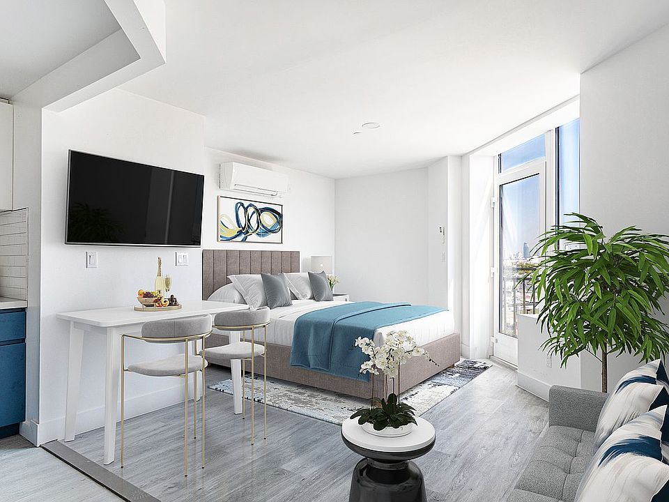 **Email inquiries only. No calls or texts please** This no fee large studio, one bath with a balcony unit boasts space and style. Featuring large open living area and amazing kitchen, a/c, stainless steel appliances, large windows and ample closet space. One of the best city views in the neighborhood! The building includes laundry, bike storage, elevator and a roof deck. Just down the around the corner from the Knickerbocker M train, as well as a short walk to the Dekalb L stop. Close to great local spots like Lazy Suzy's Coffee, Knickerbocker Bagel, Ops Pizza and much more. Parking available for rent. Smoking allowed:No