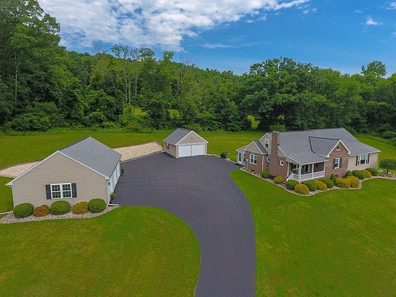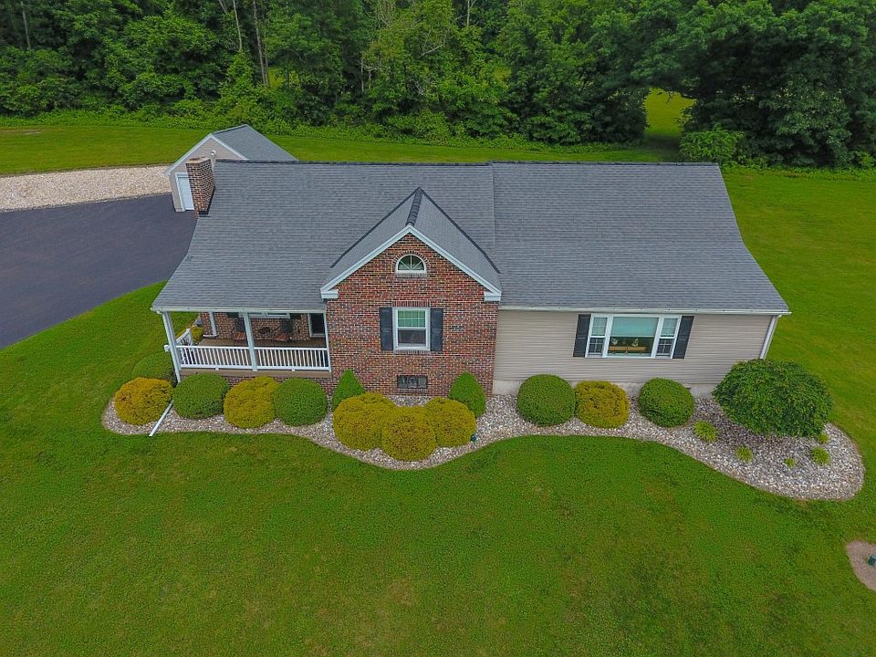These Motivated Sellers want to move to Florida so they have reduced the price of this fabulous home! You will never find a better deal for 9.2 acres with such an exquisite view (they watched 6 different fireworks displays from their front porch!) AND attached in-law suite with private entrance! The original home has been impeccably kept and has 3 bedrooms, one full and one half bath as well as a full basement with additional shower and toilet. The new addition (done in 2006) adds the attached in-law suite with private entry, large living/family room, bedroom with walk-in closet, full bath and kitchenette. The in-law suite can easily be converted to an additional bedroom and family room. Spend quiet evenings on the large enclosed rear porch. Have your early morning coffee on the front porch and enjoy the view of the valley below. For your sense of well-being there is a full home security system which includes both garages, with fire and medical alerts as well as an alarm that alerts to someone coming up the long driveway. There is plenty of space for all your vehicles in the two detached garages in pristine condition - one 3-car garage and a 2-car garage. The property is 9.2 acres according to the deed. It is possible the back 5 - acres can be subdivided and another home built there. (This would be a question for the Township should there be interest.) Along with the in-law suite addition done in 2006, a new septic system was installed, new roof, new furnace, all new windows, enclosed rear porch, second floor dormers and the 3 car garage. All necessary maintenance equipment (for grass and snow, etc.) are on site and for sale separately and/or negotiable.