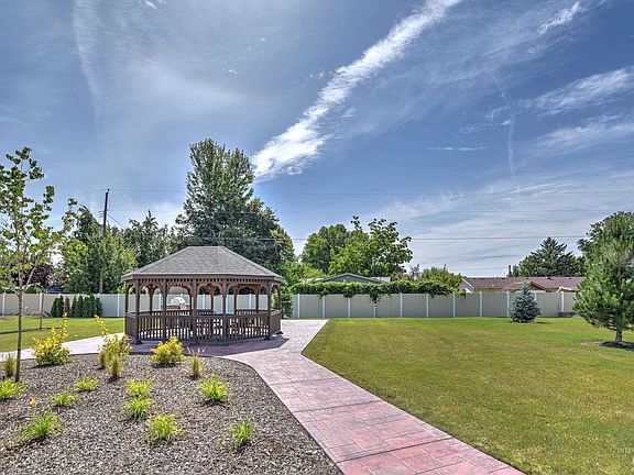 Glen Haven by Ted Mason Signature Homes. Charming low maintenance single level home with exceptional craftsmanship. Quality finishes and touches throughout, including quartz counters in kitchen and baths, custom built alder wood cabinets, LVP and tile flooring. Open floor plan, generous great room with 10’ ceilings and gas fireplace. Kitchen boasts center island, full tiled backsplash, Bosch appliance package, spacious dining & walk-in pantry. Primary suite and ensuite with dual vanities, no step walk-in tiled shower, separate room for water closet and ample closet space. Front courtyard and rear covered patio, oversized 2 car garage with 200 AMP service for electric vehicles. Nestled in the heartbeat of downtown Meridian this charming community of single level modern New England cottage style patio homes will capture your heart. Cherry Blossom features a gathering area w/gazebo, fire pit & built-in BBQ. Front & rear landscape maintenance included with HOA. Convenient downtown access.
