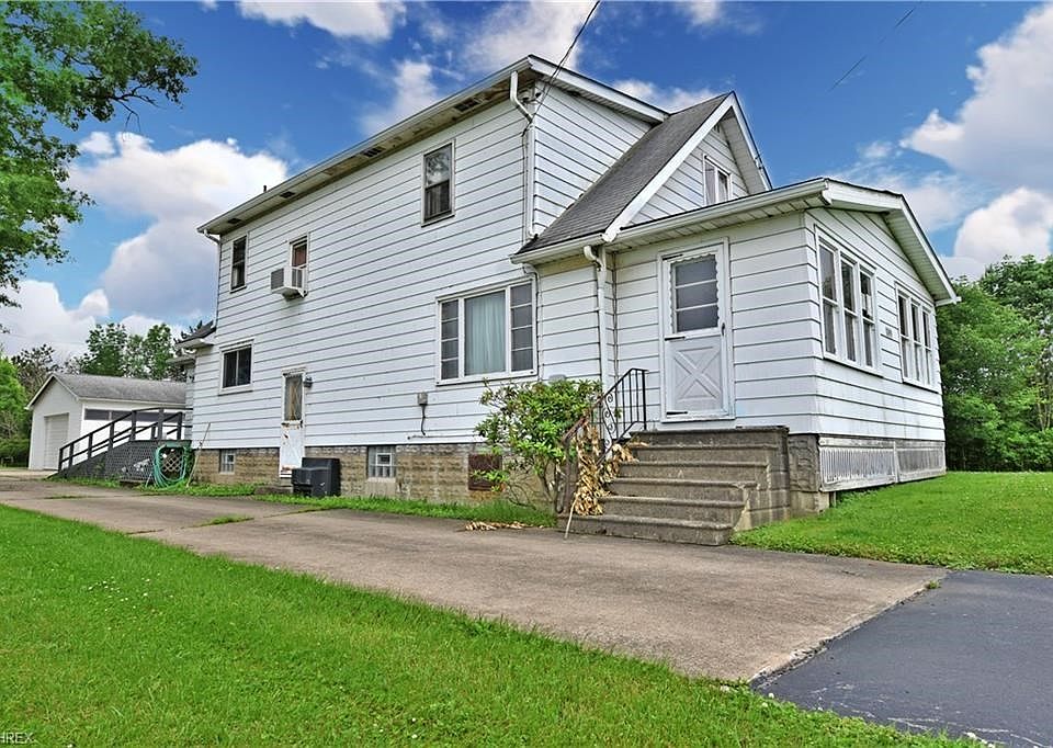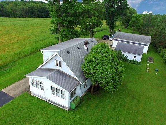 Don't be fooled, this rural country farm house has lots of potential. Scenic views and a larger than expected lot await as you reach the long, blacktop drive that transitions to concrete. Open fields next door ensure privacy while the nearby opposite highway eliminates any possible neighbors. Lush trees line the property while two large garages stand prominently near the home. A finished wooden ramp leads to a mud room, making this property easily handicap accessible. A spacious kitchen boasts wooden cabinets and vintage art deco era appliances. A half bath resides nearby along with basement entry. A spacious living room yields access to a first-floor master bedroom. Breezeway entry can be found at the far wall. Upstairs, two additional bedrooms each contain carpeted flooring wood panel walls. An additional full bath divides the second-floor rooms. If you're looking for a unique country remodel or flip, this may be the home for you!