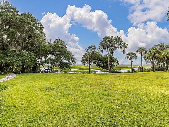 "Pegasus By the Sea" 2+ acres of total privacy, eastern marsh view, tidal creek, and Intercoastal Waterway with Sapelo Island beyond and permanent dock! The house and outbuildings were completely renovated in 2015 by renowned Artist/nature lover including plumbing, wiring, reclaimed wood floors, zoned HVAC. Open Kitchen includes Wolf Stove, Subzero fridge, Bosch dishwasher, Scotsman icemaker. 16' pecky cypress vaulted Great Room with amazing views. Private Master suite,2 cedar closets, bath includes indoor and outdoor showers and claw tub; laundry room open to pvt gardens. 2 additional bedroom suites enjoy pvt unique baths. The den/office and mudroom open to covered rear yard with several outbuildings used for gardening, hobbies and storage. 700' well.