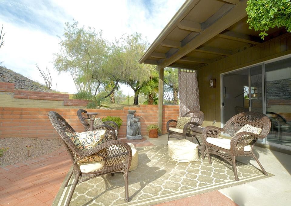 Stop looking, this is it! Beautiful, bright corner town home in Desert Hills 2. Lovingly maintained with no popcorn, all freshly painted with neutral designer colors and updated lighting. New dual way blinds on all windows and newer washer and dryer. Their is tile in the kitchen, entry and bathrooms, and clean carpet in living and bedrooms. The master bedroom has a bonus room that can be used as an office, sitting room, hobby room or work out room!Quiet, private, patio in front and back, both are so perfect to entertain. The javelina and quail come to visit the common area just outside the wall ... you can watch from your kitchen window or while sitting on the lovely patios.