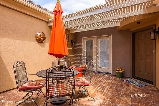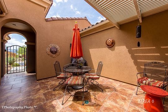 One of the original models, Iris, 1,676 sq. ft. was considered one of the most sought after because it has a front courtyard and a tandem garage, room for a golf cart or an ATV. The Iris has 2 bedrooms, 2 baths, and an office/den. You will see the many upgrades in this adorable Sun City home. The exterior has recently been painted ($4,950) good for at least 10 years. New Lennon Air Conditioner ( $6,500), new refrigerator including 5 year warranty ($1,466), pergola in courtyard ($1,211) and two invisible screen doors ($850) one in the courtyard and out to the patio. Located on a prime lot on the Conestoga Golf Course with panoramic views of the eastern mountains. Covered patio with extended pavers and fenced (pet friendly), perfect for relaxing or entertaining. Come see for yourself this little piece of paradise, well cared for home in Sun City Mesquite. As a resident of Sun City you have access to the 30,000 sq. ft. recreation center with indoor and outdoor pool, tennis, pickle and bocce ball, reduced rates at Conestoga Golf Course and 10% discount on food at 1880 Grille. SID Paid ($4,815.62).