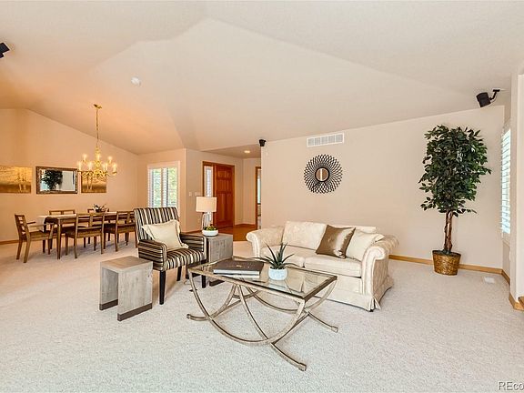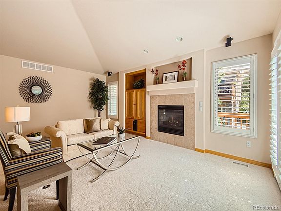 Luxurious main floor living is yours in this bright, sunny ranch style home with finished basement. This floor plan, which on the main floor has 2 bedrooms, a den/office, 2 full baths and a main floor laundry room is unique in the Villas and provides everything someone needs to live a stair-free life. For extended family, guests or entertaining, the basement offers a giant rec room with high ceilings, a big bedroom and a full bath with double vanities. The collector will love the 2 HUGE storage rooms. Upstairs, wander onto the large composite deck with electric awning and a handy gas outlet. Never run out of propane again! This sunny area can be used year-around! The deck has an electric awning and views of the greenbelt. With its SW exposure, plants thrive and it can often be used year-round to grow your own garden. The roomy kitchen has quartz counters, a farmhouse sink, stainless appliances and a serving bar to the casual eating area. The laundry room is conveniently off the kitchen. Don't miss the large storage drawers and extra cabinets. On cooler days, curl up by the gas fireplace and enjoy the built-in sound system with in-wall speakers. Large gatherings can enjoy meals in the formal dining area which could easily accommodate 14 or more. Now on to the sumptuous primary suite with a ceiling fan, plantation shutters and an adjacent spa style bath. There's a large walk-in shower with bench, a separate whirlpool tub, 2 separate vanities and a walk-in closet that's big enough to live in! The 2nd main floor bedroom can accommodate a king-sized bed and has a wall of closets. The full bath is right next door. The Villas at Cherry Creek is adjacent to Cherry Creek State Park and residents walk into the park to enjoy the many trails and off leash dog park. The sweeping views of the front range will take your breath away. Community amenities include a clubhouse, outdoor pool, hot tub and lots of greenbelt. You'll love living here!