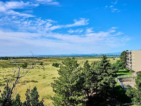 Enjoy 55+ maintenance-free living at its finest in this Seville at Heather Gardens 5th floor, south-facing, corner unit with breathtaking views from Pikes Peak to Devil’s Head and beyond! With a prime location abutting Cherry Creek State Park open space, wildlife sightings abound! The Seville community is a highly desirable cluster of six buildings which include underground parking, in-unit laundry, beautiful grounds and specific Seville amenities such as a private pool, hot tub, tennis/pickleball court and a lovely pond. Also enjoy all that Heather Gardens has to offer including a clubhouse, par 32 nine-hole golf course, Rendezvous restaurant, pools, workout facilities, clubs, classes and more! The condo building is very secure with an inviting and well-maintained lobby. The unit is quiet as it’s the last one at the end of the hall. Open the door to a crisp, clean and ready-to-go unit that has new carpet throughout and fresh paint with Accessible Beige walls and Chantilly Lace trim! It has windows galore and is light, bright and very inviting! It is a delightful blend of vintage and new that have been nicely paired together. An oversized living room can host two seating areas and adjoins the formal dining room which can easily seat six or more. The kitchen has direct access to the entry hall and the dining room and includes all white appliances, plenty of cabinetry, prep and storage space. The laundry closet with washer and dryer included and another coat/storage closet are in the hall. The primary bedroom is spacious with a large walk-in closet with built-ins and an en suite three-quarter bathroom. The secondary bedroom can flex as an office space and has easy access to the full guest bathroom. The enclosed lanai is a place to relax and watch the sunsets! Did we mention never-ending views from nearly every room? There’s a storage closet and trash chute behind closed doors on the same wall as the elevator, or take the elevator down to the secured parking garage.