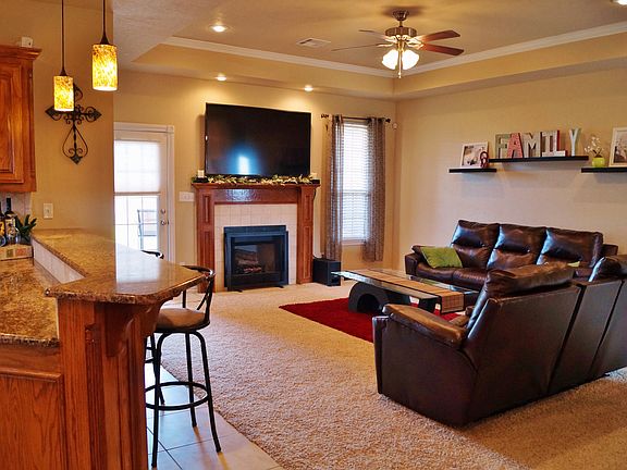 Please call or text Stefanie Johnson at 580 583 5238 for the most up-to-date information on this property. Wow effect present here! Fabulous 4 bedroom, 2 bath, 2 garage home on almost an acre of land in Elgin is less than 8 years young and perfectly located right down the road from the award winning Elgin school yet nestled just outside the Elgin city limits where taxes are low and your country dreams come true. Many recent upgrades and extras include a steel post wood privacy fence, an expanded stamped concrete back patio, a top-of-the-line security system with closed circuit surveillance w/online monitoring, a stainless steel refrigerator that stays and a fantastic highlight that is sure to delight entertainment lovers: 2 professionally wall mounted (by AudioTech) flat screen TVs: 70in LED Hi-def in the living room above the fireplace and a 42in plasma in the master bedroom which is space savingly installed out of the way, above the door. Both TVs stay with the house at no additional cost to buyer! Solid wood crown molding accents in beautiful pan ceilings combined with lots of recessed lighting exude quality in craftsmanship and style. Choice granite counter tops throughout and a large center island in the kitchen are as functional as they are beautiful while the custom rubbed turquoise finish front and back doors add cowboy country color and western flair. The septic system (was just pumped) is environmentally friendly and both, the fire pit and kids play-set can also stay with the right offer. Wow! The family friendly neighborhood, close proximity to Elgin schools and easy access to I-44 to OKC and Texas and just 15 minutes to Fort Sill make this the perfect location. Welcome Home! Please call or text Stefanie Johnson at 580 583 5238 for the most up-to-date information on this property or to search all listings in MLS visit www.sellinglawton.com