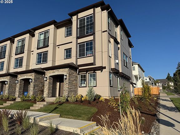This is the one on corner location with greenspace at side, territorial views, tons of natural light, AC, Washer/Dryer, Refrigerator included! Minutes away from Art Rutkin, Progress Ridge, and Murray Scholls. Welcome to this stunning three-story townhome that perfectly blends style, space, and functionality. The oversized two-car garage is extra deep, offering plenty of room for storage or weekend gear. In addition, there is a side-by-side driveway and extra street parking for guests. Inside, you'll find a beautifully appointed kitchen featuring sleek quartz countertops and a large island ideal for entertaining guests or enjoying casual meals. Natural light pours in through generous windows, creating a bright and welcoming atmosphere throughout the home. Step out onto the deck just off the kitchen—perfect for sipping your morning coffee or relaxing in the fresh air. Upstairs, the spacious primary suite offers a private retreat with a modern shower and thoughtful design touches.This home is a must-see for anyone looking for comfort, convenience, and contemporary charm.Future retail space in the community brings restaurants, coffee shops, boutiques and more! Come enjoy the walking paths, fenced dog parks, pickle ball courts are open, and more! Come tour today with an on-site representative!