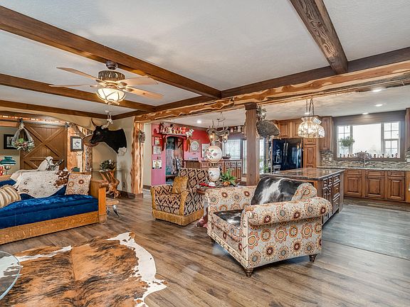 Welcome home, partner, to your homestead on the hill. As soon as you stroll through the front door, you've got a place to hang your boots, spurs and chaps in the biggo' mudroom equipped with a sliding barn door. Cozy up in front of the fireplace with your sweetheart on these dreary, cold nights. The gorgeous kitchen is even big enough, and with it's custom bar-top, to have all your rowdy friends over. Swingin' saloon doors lead into the pantry to store all your dry goods. Meander on back to the master bedroom fit for a King. Then when you're gettin' gussied up for your 9-5 or a night out on the town, you've got your own personal dressing room and walk-in closet that'd be fit for Dolly Parton herself. This homey hideaway, has another living room that can be turned back into another bedroom for all your youngsters. Bring a couple horses, sheep, several goats, or a lot of chickens, if that's your thing, to the 5 acres they can call home.