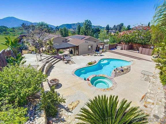 Welcome to your dream retreat nestled in the serene landscape of Jamul! This spacious home on 1.4 acres offers the perfect blend of comfort and luxury for your family. With over 3 bedrooms plus room for another bedroom, a sparkling pool, and a relaxing spa, every day feels like a vacation. Step inside to discover a newly remodeled kitchen, where you can unleash your culinary creativity while enjoying gentle breezes drifting through the new windows with plantation shutters. 2 Solar systems (leased) to lower your SDGE bill. Whether you're hosting a gathering or simply enjoying a quiet evening, the stunning sunsets and starry nights provide the perfect backdrop. Outside, the expansive fenced and cross-fenced yard offers plenty of room for kids and pets to play safely. Imagine lazy weekends spent lounging by the pool or gathering around for a party with friends and family - plenty of space. Numerous fruit trees. Don't miss the detached pool house/granny flat for extra house guests and numerous out buildings for extra storage. Located in an area known for its excellent schools and friendly neighborhood atmosphere, this home is the ideal place to raise a family. With its tranquil surroundings and convenient amenities, you'll love coming home to Jamul. Don't miss your chance to make this slice of paradise yours!