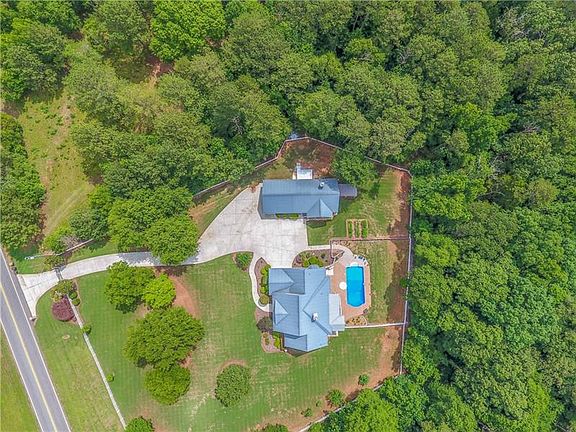 This beautiful estate features 2 homes set on 10.89 serene, wooded acres. The main home is approximately 5,000 square feet and features 6 spacious bedrooms, 4 1/2 baths, living room with natural stone fireplace, a formal dining room, an exercise room, a hobby/play room, 2 full kitchens - main level and lower level, 2 laundry rooms, a 2-car garage and an in-ground salt-water pool. The kitchen is a gourmet chef's delight with quartz countertops, a huge island, glass-doored pantry, stainless steel appliances and custom cabinetry.The guest home is approximately 2,000 square feet and has 3 very large bedrooms, 2 full baths, large kitchen, living room with brick fireplace, a laundry room, a large room that could be used as a dining room or office and an oversized 2-car garage.The property is gated for privacy and has security cameras that provide a 360 degree view. It is professionally landscaped with fencing enclosing 2.1 of the 10.89 acres and has 3 raised-bed garden spaces.This unique estate has it all and must be seen to be appreciated. It's close to shopping and is ideal for a large or multi-generational family or home business. The guest house could provide rental income.